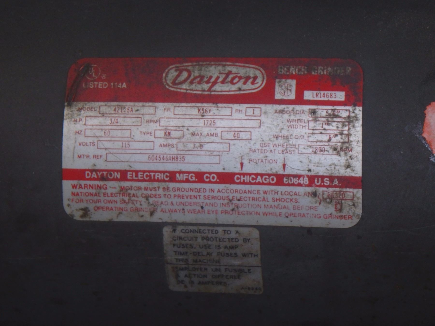 Dayton Bench Grinder Item Ea9869 3 20 2018