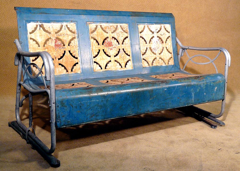 White And Blue Porch Glider Bench Circa 1930s